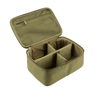 Сумка С-39 для кормушек, грузов, оснасток и т.д. имеет сверху прорезиненную ручку, закрепленную на жесткой пластиковой крышке. Внутри в верхней части расположен дополнительный карман из сетки на молнии, нижняя часть разделена эластичными перегородками на 4 ячейки, которые крепятся с помощью липучек, благодаря чему количество и размеры ячеек можно варьировать при необходимости.Характеристики