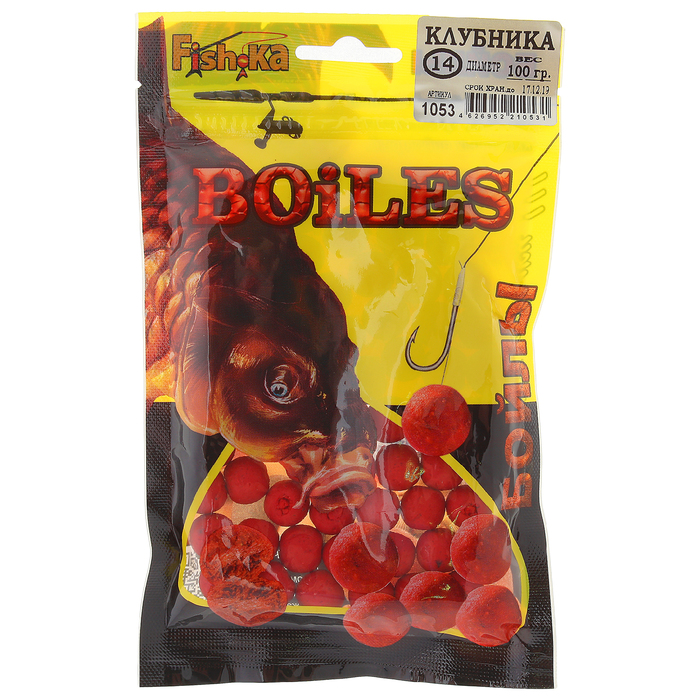 Для ловли на бойл используется специальная волосяная оснастка. “Фишка” предлагает широкий бойлов. До 20-ти видов по ароматизации, разных цветов, размеров от 8мм. до 18 мм. В тонущих бойлах тесто замешано на яйцах, варёные, в рецептуру введен птичий корм (robin red). Такие бойлы не растворяются в воде и долго привлекают любопытную рыбу своим вкусом, видом, питательной ценностью.Характеристики