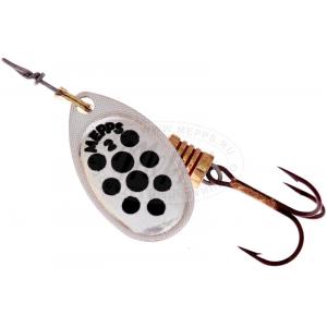 На лепестки MEPPS AGLIA DECOREE нанесены красные и черные точки. Опытные рыболовы, признавая полезность этой окраски, разделяются во мнениях о причинах ее эффективности. Одни считают, что точки на лепестке повышают контрастность окраски, тем самым провоцируя атаку рыбы. По их мнению, доказательством этого служит уловистость AGLIA DECOREE в мутной воде. Другие — наоборот придерживаются мнения, что эти же точки, при вращении сливаясь в мягкие линии, делают окраску спокойнее, что меньше настораживает рыбу и придает приманке внешность насекомого. Недаром MEPPS производит некрупные (№1, 2, 3) размеры данной модели. Лепестки AGLIA DECOREE имеют серебряную, золотую и медную окраски. Вы всегда имеете возможность подобрать наилучшую комбинацию для ваших условий. При вращении угол отклонения лепестка от оси составляет 60°.Характеристики